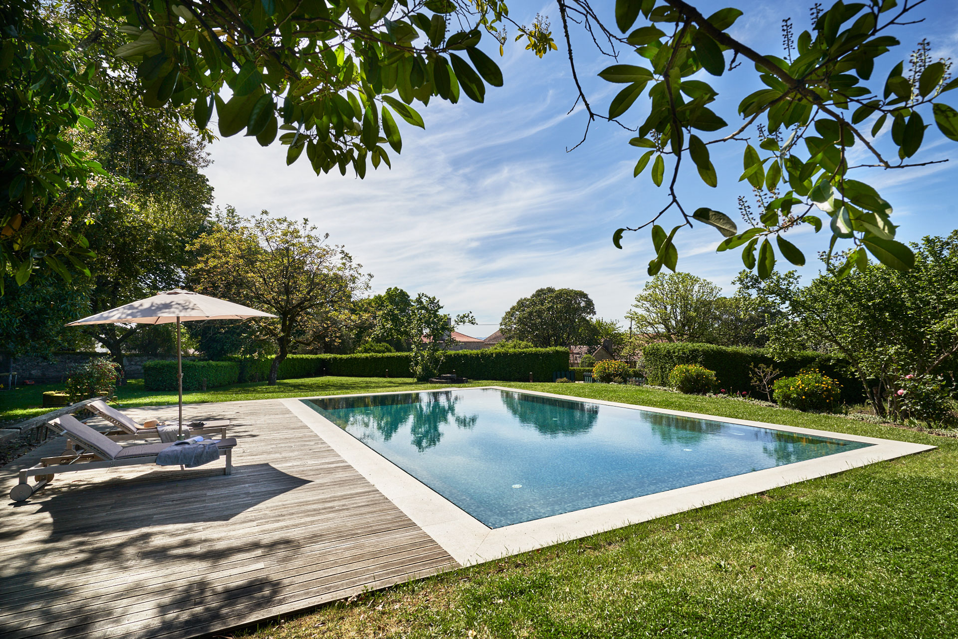 Escondida por trás de altos buxos, espelha-se a nossa refrescante piscina de sal, rodeada dum amplo espaço de relva, permitindo que o sol se espalhe todo o dia para um desfrutar em pleno, podendo encontrar sombra por baixo da grande nogueira que se ergue ao seu lado. Aqui pode usufruir duma bebida gelada, ou até fazer um piquenique feito pelo chef à medida de cada hóspede. Flores coloridas fazem de guarda no muro de pedra, e um estreito caminho leva ao miradouro com uma mesa pronta para receber leitores ou contempladores da nossa natureza.